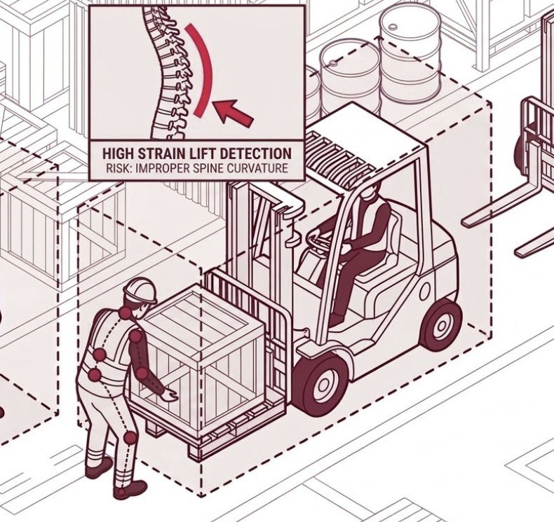 Detect if the operator is lifting objects in a manner that is prone to injury.